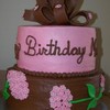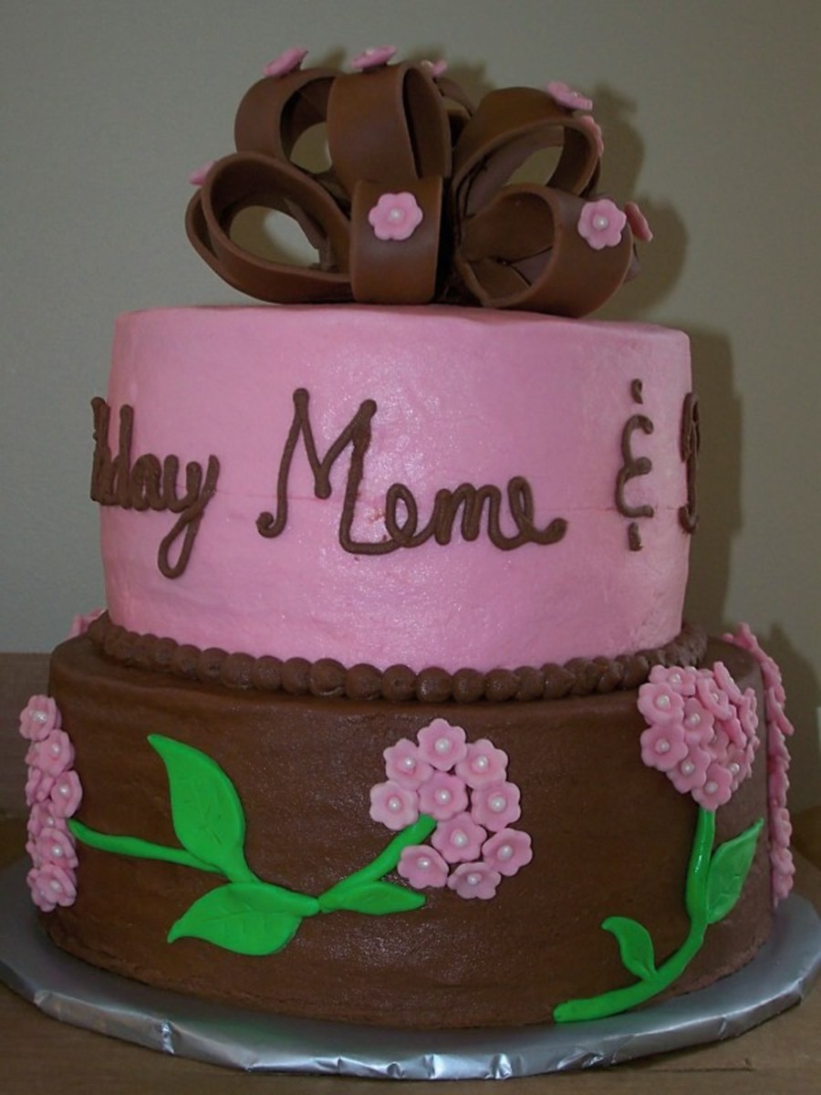 The top tier was cherry cake with a chocolate chip ricotta filling and iced in vanilla buttercream. The bottom tier was a tuxedo cake with a cheescake filling and chocolate butter cream icing.