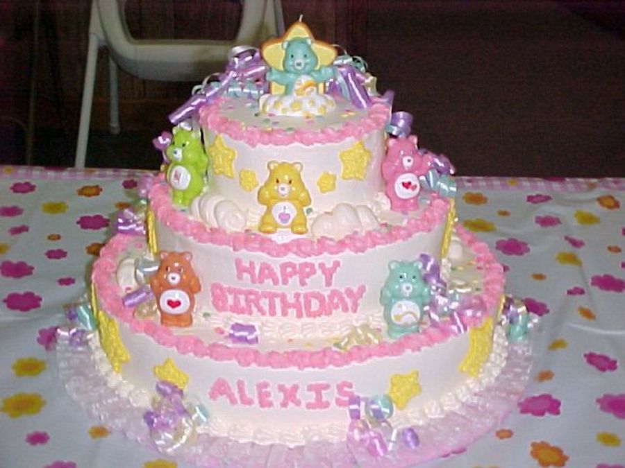 Pretty cake! I used these same bears this weekend in my daughters birthday cake they are in the 88 cents toys at Walmart good bargin and perfect size! I never even thought about doing the cake in pastels I immediatly thought sky, Great idea it came out pretty really girly!