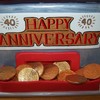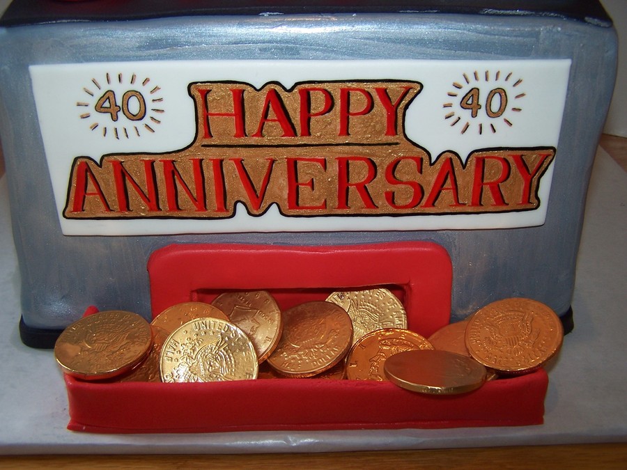 All cake covered in fondant. Hand painted wording with food coloring. Finished off with chocolate coins.