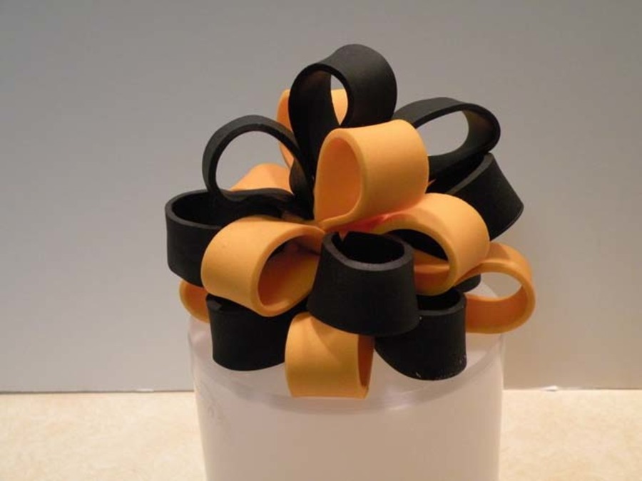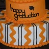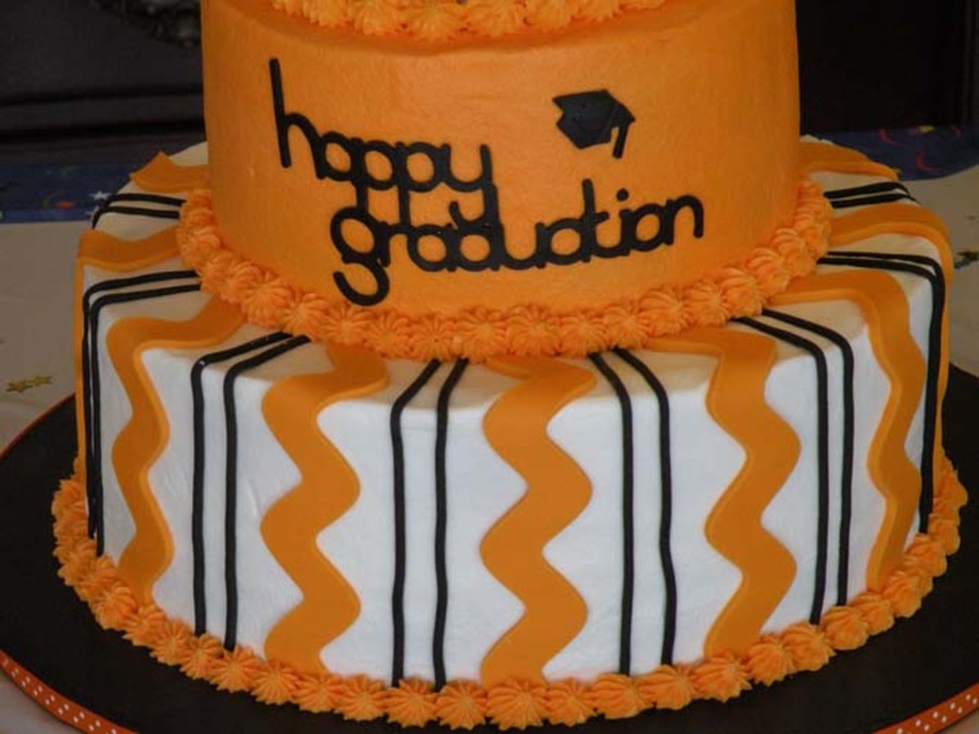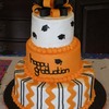 Loopy bow was my first. Black is Duff fondant/tylose- see my posts re this experiment. First "real" cake decorated with my Cricut Cake- rickrack and lettering from Cake Basics, small grad caps created in SCAL2. Black lines are fondant pushed thru extruder.