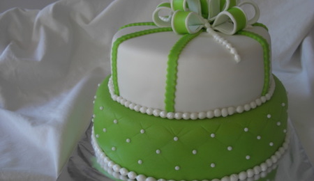 Green White Cake With Bow