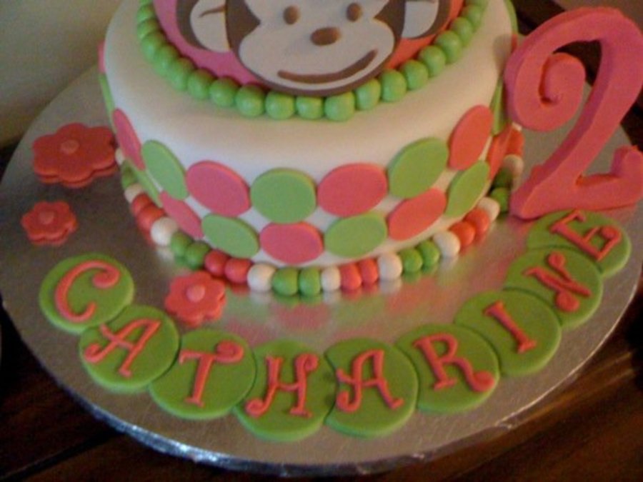 I made this cake for a friend. The theme was mod monkey. I made a two tier cake...9" and 6", a smashcake and cupcakes. The cake was WASC with strawberry jam. Loved the jam!!! This was really fun to make. I usually take my own pics but didn't have time, so this was taken with an iphone. The second pic was at the party and didn't turn out well either. The birthday girl ate the nose from the smashcake before we were able to get a picture. Sure wish the pics were better because I was really happy with how this turned out.
