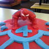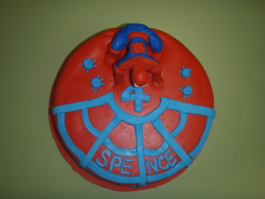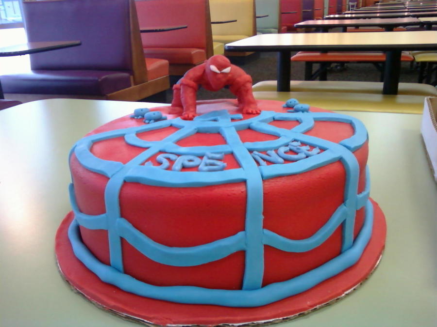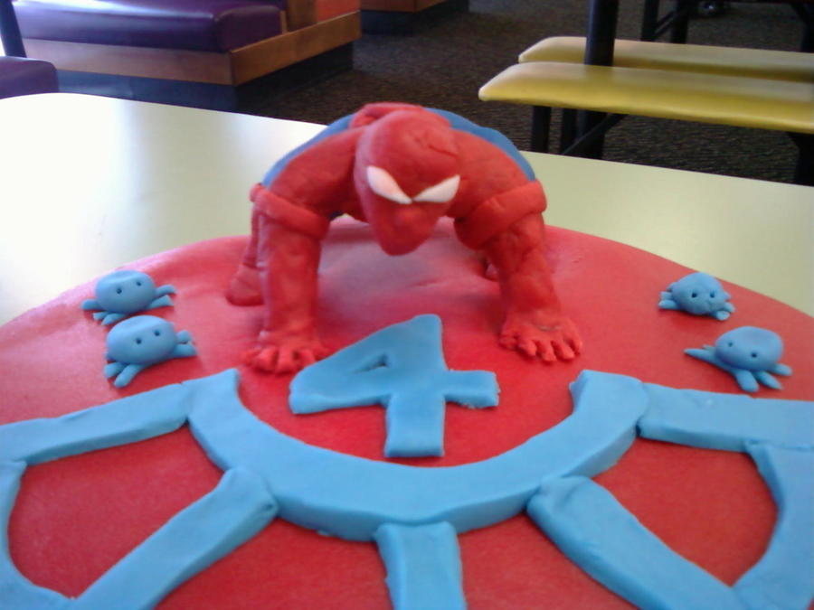 First spiderman. My DH did pretty much everything on this one, all I did was write the name :) This was also one of the three cakes we had due on the same day so we sort of divided them up. He sculpte spiderman on a wire frame (he wasn't happy with it, but I thought he did great) and poor thing was so tired he didn't feel like adding the last pair of legs on the spiders off to the side LOL I don't think anyone noticed, but it was fun and a learning experience.