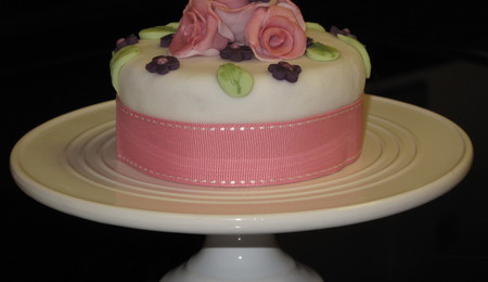 My word....this took such a long time, but I enjoyed every moment of it. But as my husband moved the cake, two turrets fell and crashed!!! The lady who wanted this cake requested it to be orange. I thought peach was a good compromise. The cake is a number of bakery bought pound cakes. I am living in furnished hotel accomodation (just moved countries.) We have a microwave but no oven. So I was able to make MMF, but not bake my cakes. I wasn't going to let the lack of an oven stop me from decorating!! Thank you very much for looking.