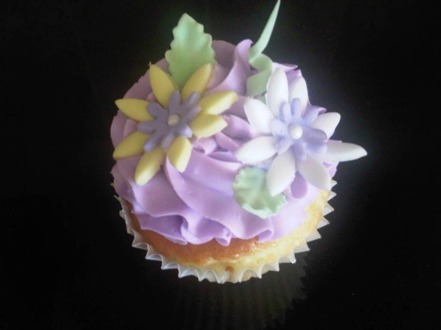 White cupcake buttercream icing fondant flowers