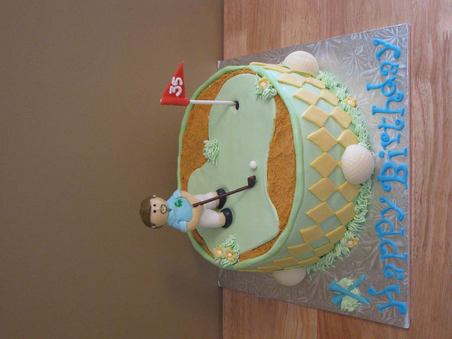 9" chocolate cake, MMF, graham cracker crumbs for sand. Gumpaste golfer made to resemble birthday boy (man). Chocolate molded golf balls, thanks to ideas from this site as always:)