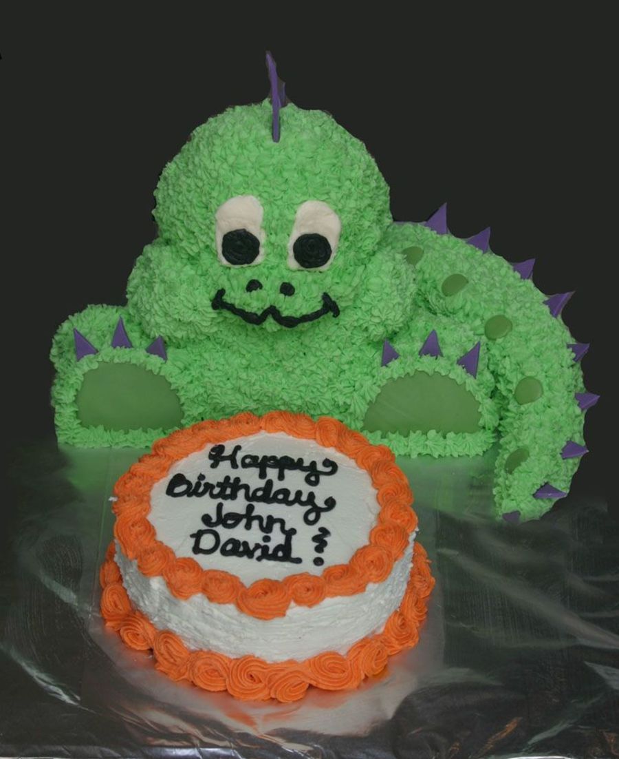 use2bethiel on 6 Feb 2007 , 2:28pm I have made the dinosaur cake too. But did you use the little bear or the big stand up bear. He looks smaller than min?