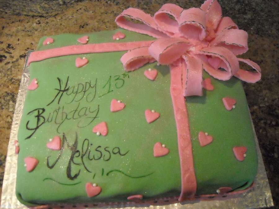 a bow cake i made for my friend 's daughter it was the first time i used the edible marker