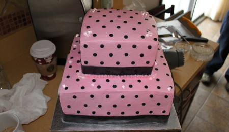 Thanks to all CC's on here for the inspiration. 3 8 inch sqaure almond cake with BC and fondant accents. TFL