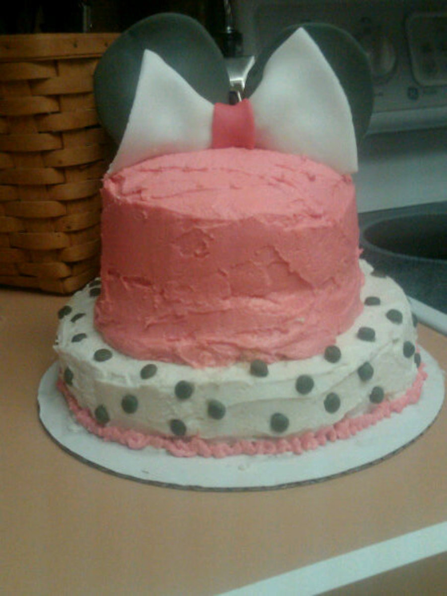 fondant dots, ears, and bow. We are new at cake decorating. Any tips would be apperciated greatly! :]