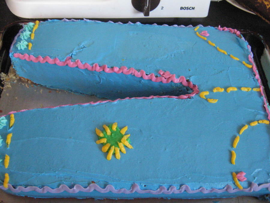 My little sister saw me watching the betty Crocker cake videos, and decided she wanted the groovy jeans cake for her beday. Only, it turned out terrible. Never doing a cut cake again! So, the space between the pants legs where there would normally be cake, got cut out. I was supposed to use that to attach to the bottoms of the pants legs, but was dismayed to find the pan to narrow. My older bro's were more than happy to eat it for me! So.... I froze it foreeeeeeeever in our frezer, and it was still super crumbly. Whatever, I though. "I'll just decorate it". But the icing was to soft, and I didnt have nearly enough! Which would explain the terrible looking sides. You can see every crumb poking through. I didn't have enough icing to cover the corners, so I did that crazy looking ruffle thing that doensn't looke like a ruffle. And then the pocket stitching is terrible, so the pockets are two totally diffferent sizes. :( AAAAnd, how do you like my patch? Also known as blog of frosting that didn't turn out right. I was so dissapointed. My little sister loved it. I know, she's crazy huh?! It might of helped if I used candy for the decorations, but... Oh, not doing cut cake ever again! I'll stick with round cakes and sheet cakes and hearts and such. Any advice on how to do anything would be greatly appreciated! ~Rachel~