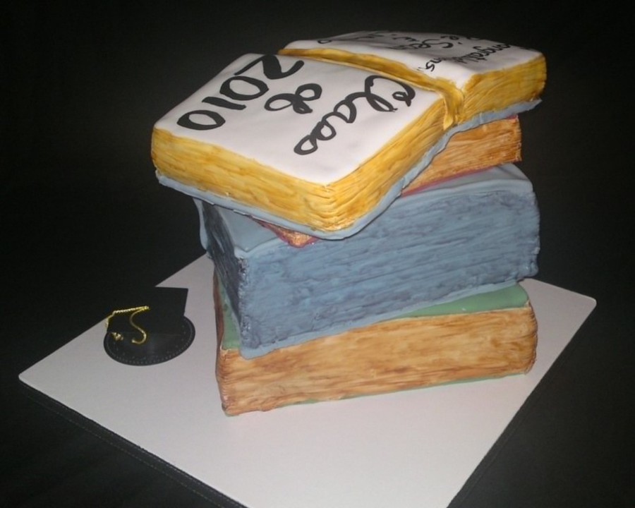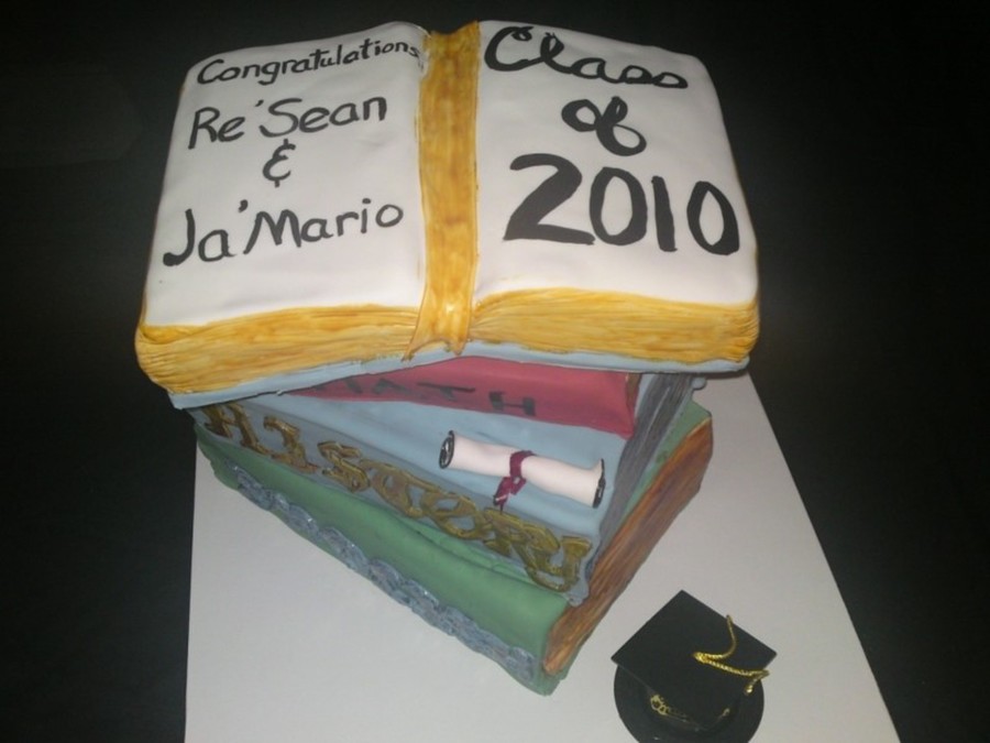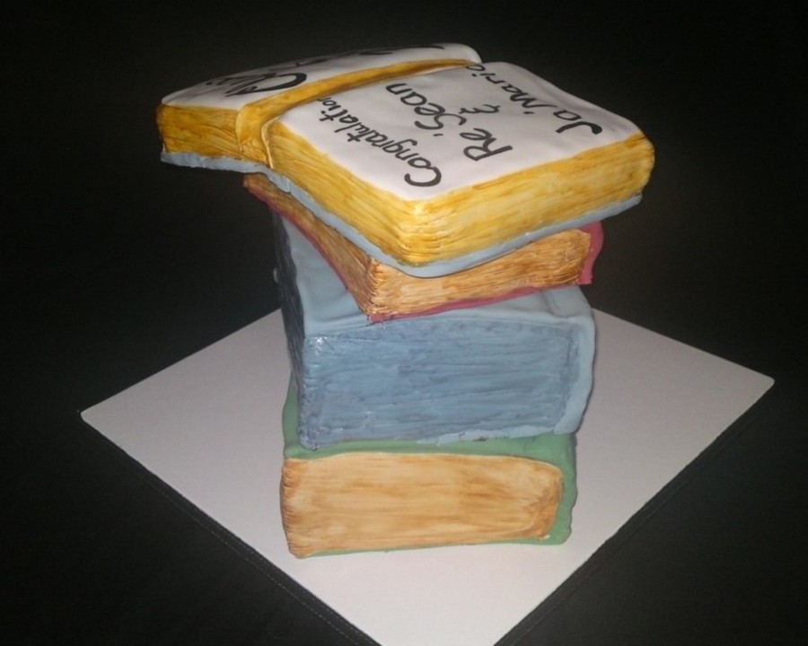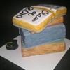 I have been wanting to make a book cake for a while and finally got the chance too! I made this for my dental assistant's son and nephew's graduation. I am very happy with how it came out, especially since I haven't made this type of cake before. Pulled an all nighter to get it done, but it was so much fun. Chocolate and vanilla cakes, covered in chocolate ganache and fondant. This was my first time using ganache instead of butter cream under fondant and I will never go back! It was so easy to mold the fondant on the cake covered in ganache that it was like no work at all. TFL!