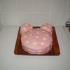 This was my very first mmf attempt and it was well before I found Cake Central! It was a huge mess to try and make the fondant myself (with no mixer). My entire kitchen was covered in a layer of powdered sugar. The only marshmellows I could find in the Netherlands were pink (and stale) so pink it was. I melted white chocolate and made the polka dots from that. Overall I was pretty happy with how it turned out for a 1st try and winging it.