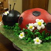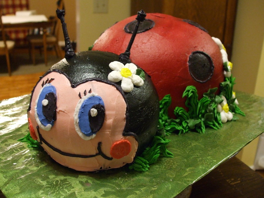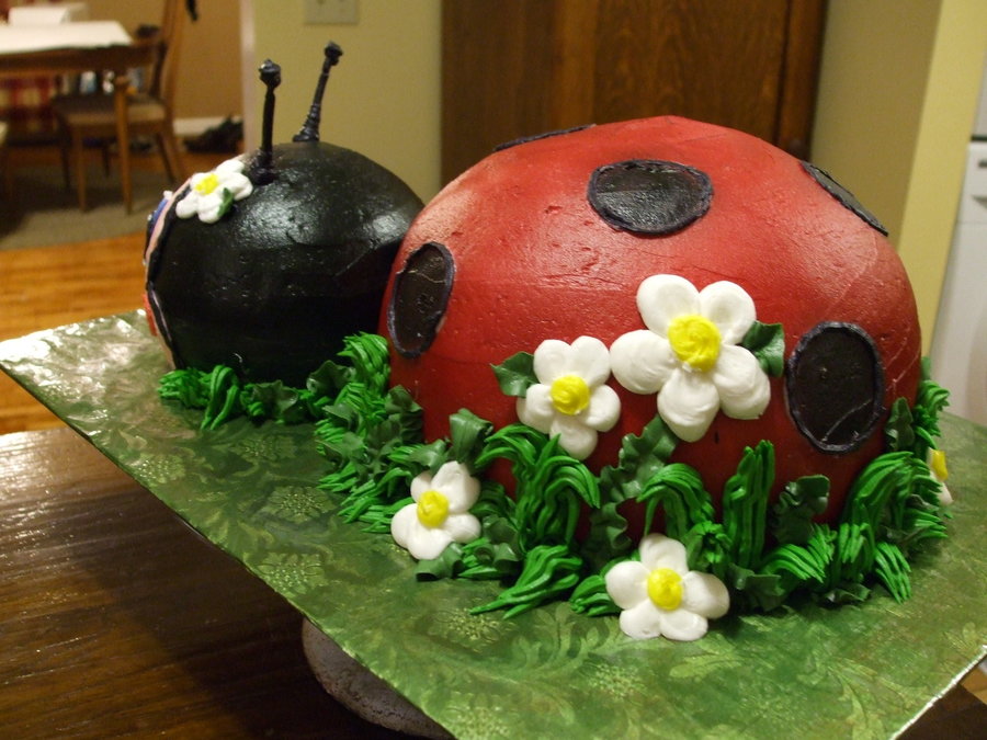 This was made for a 5&6 year old girl's softball team. The father had seen a picture of a ladybug cake and wanted one made for the team. It's tie dyed cake with buttercream icing and she was lots of fun to make. :)