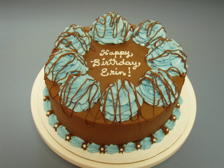 Chocolate cake with chocolate icing with buttercream and pearl sprinkles.