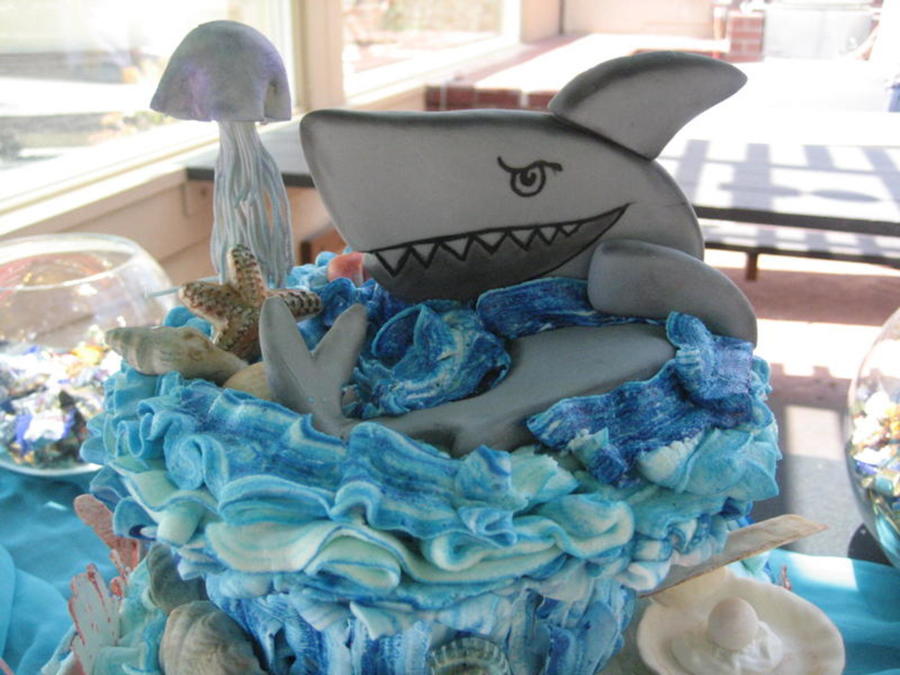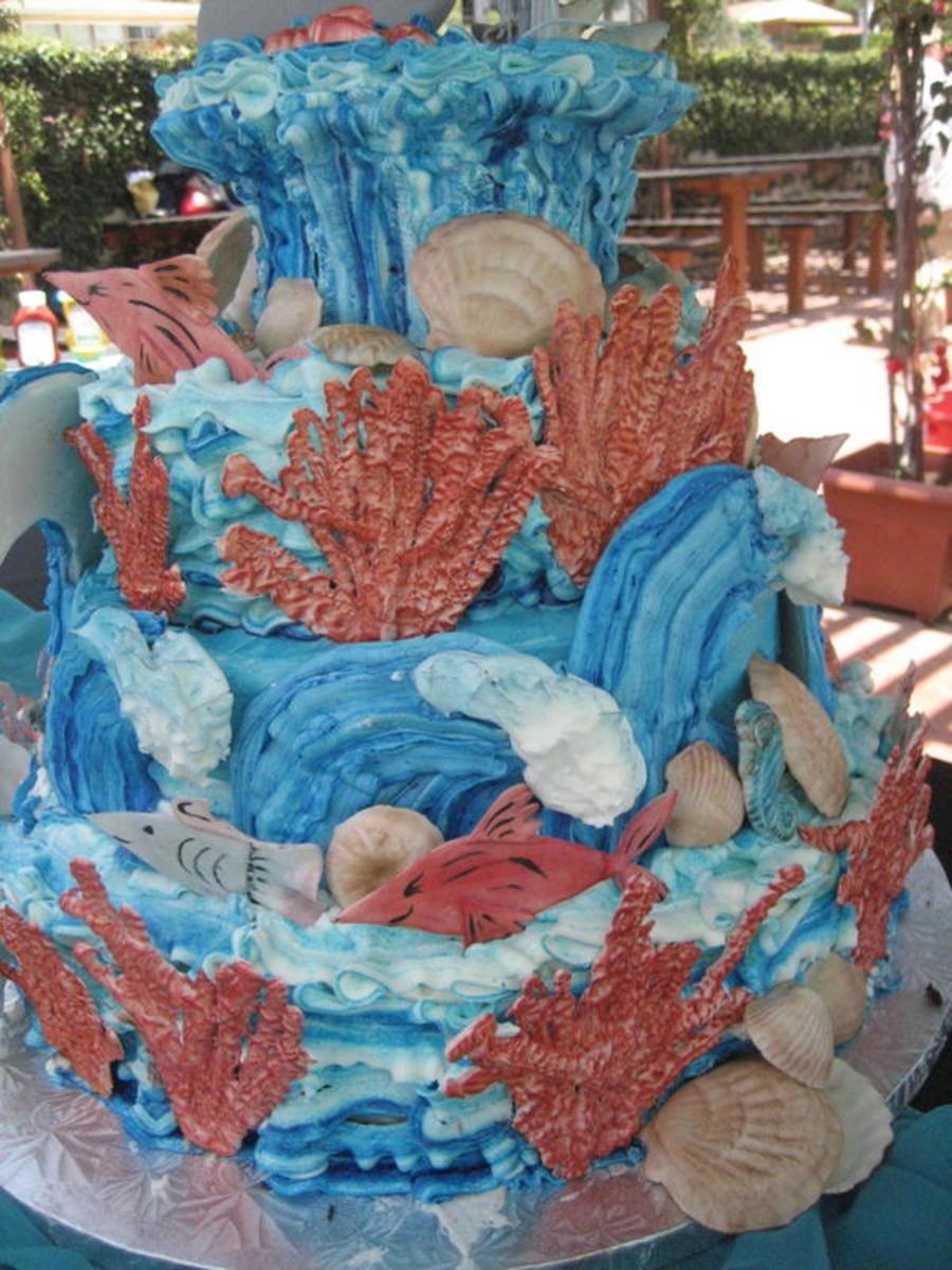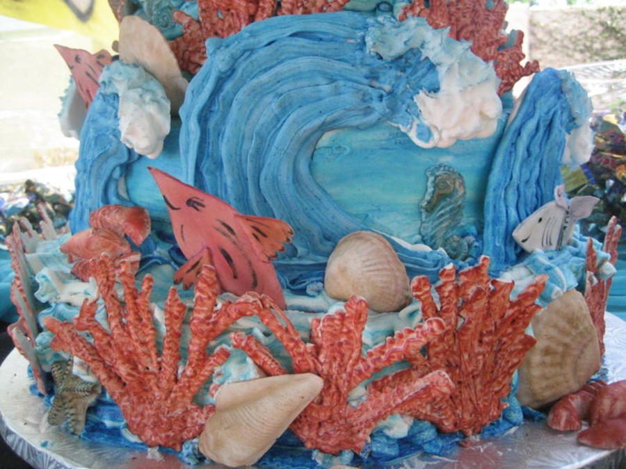 For my Middle School Grad. Fondant, GP and WC shapes, BC and RI frosting and waves. All tiers, all things edible