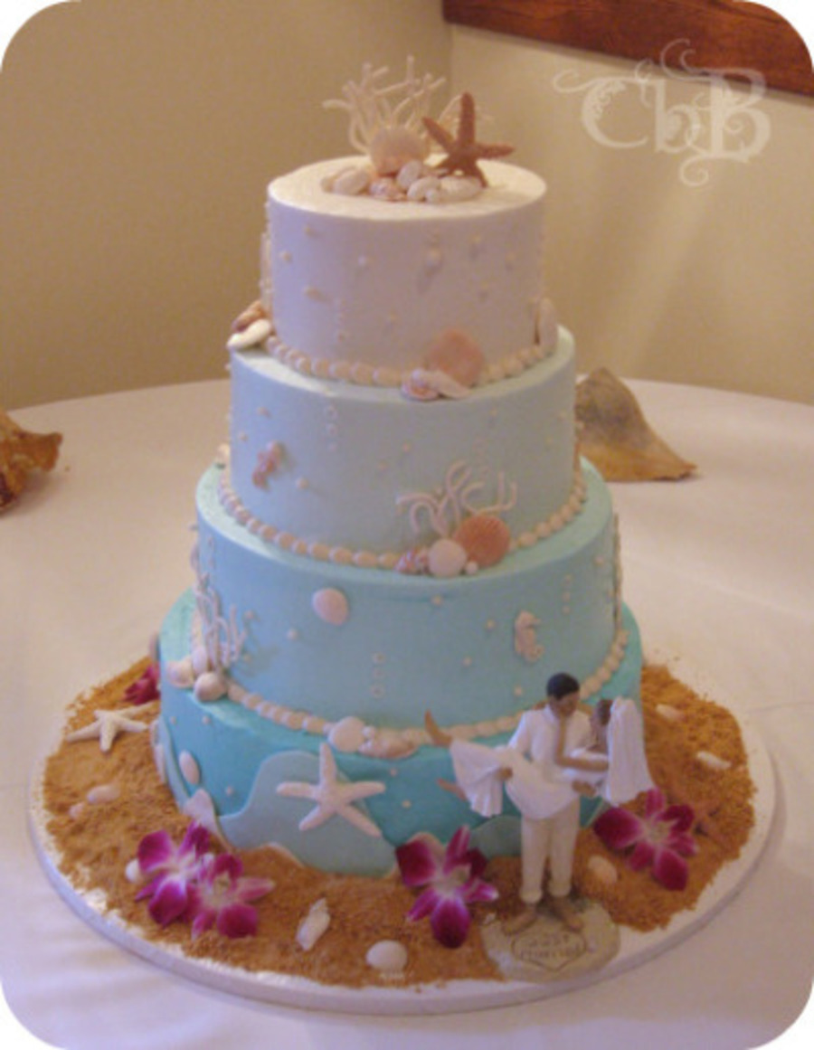 Couple got married in Jamaica and this was for their reception. Covered in BC with gumpaste accents and pearls. Real flowers. TFL!