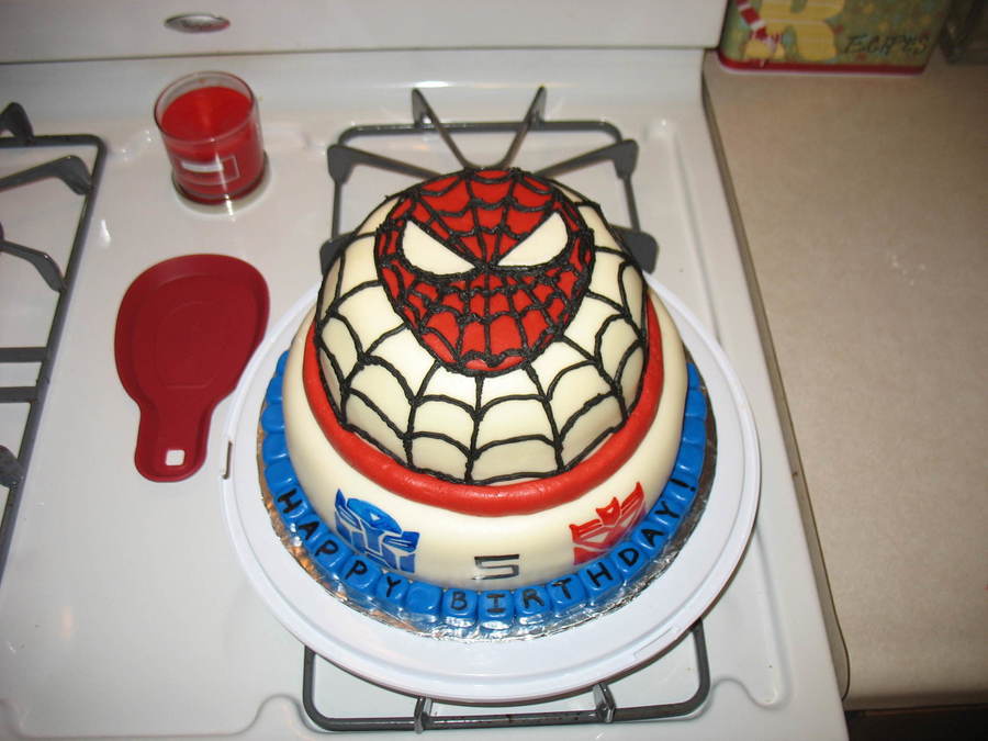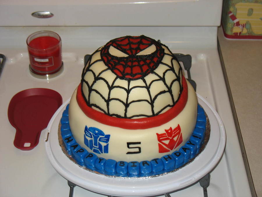 My first attempt at a tiered, fondant covered cake. This was made for my nephew for his 5th birthday. He requested a spiderman/tranformers cake.