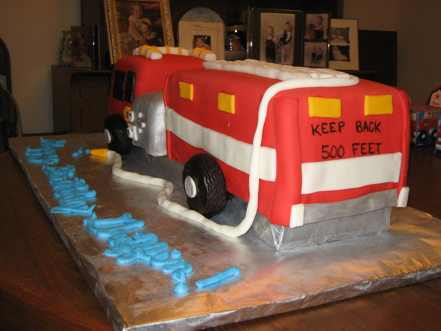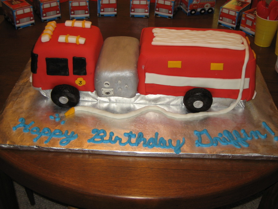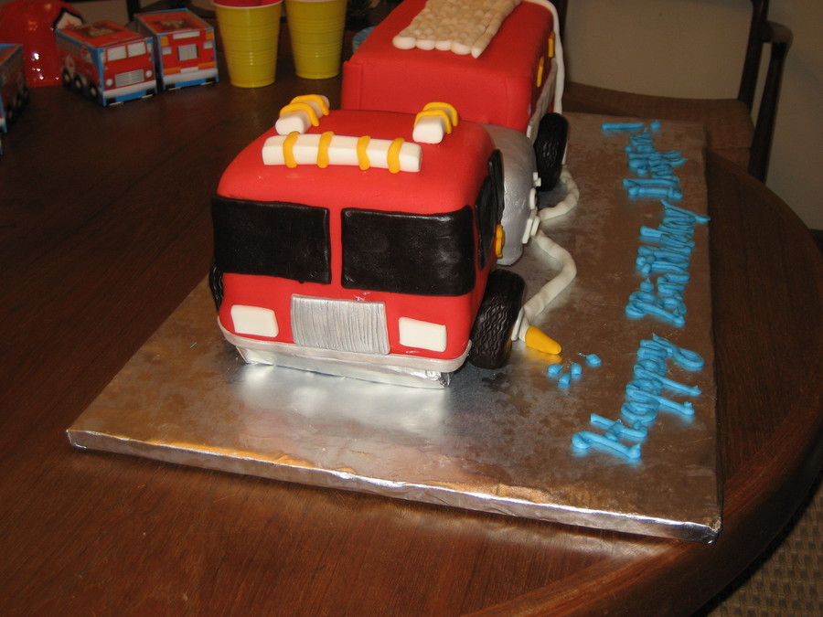 For my son's 3rd bday- my first attempt at a truck. Happy with the way it turned out, learned alot too. The front two parts were lemon cake with lemon buttercream, and the back was chocolate fudge with ganache. This cake turned out alot bigger than I thought- that cake board is 30" by 18"! He loved it!