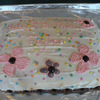 Slab Cake decorated with buttercream icing and junior mints for my daughters 1st birthday.