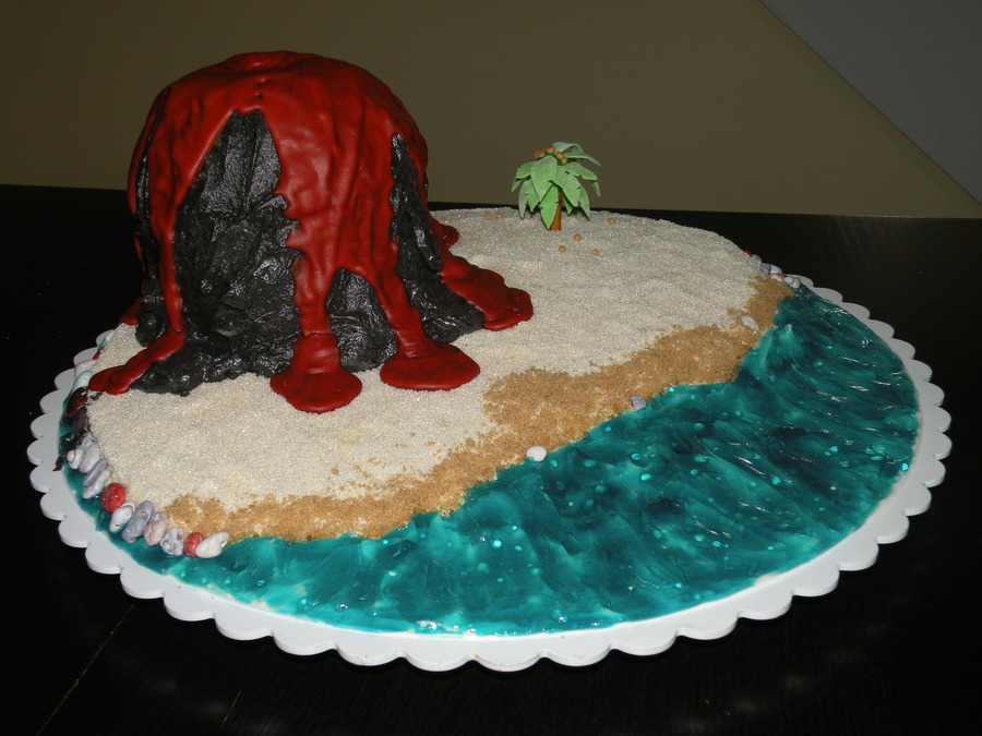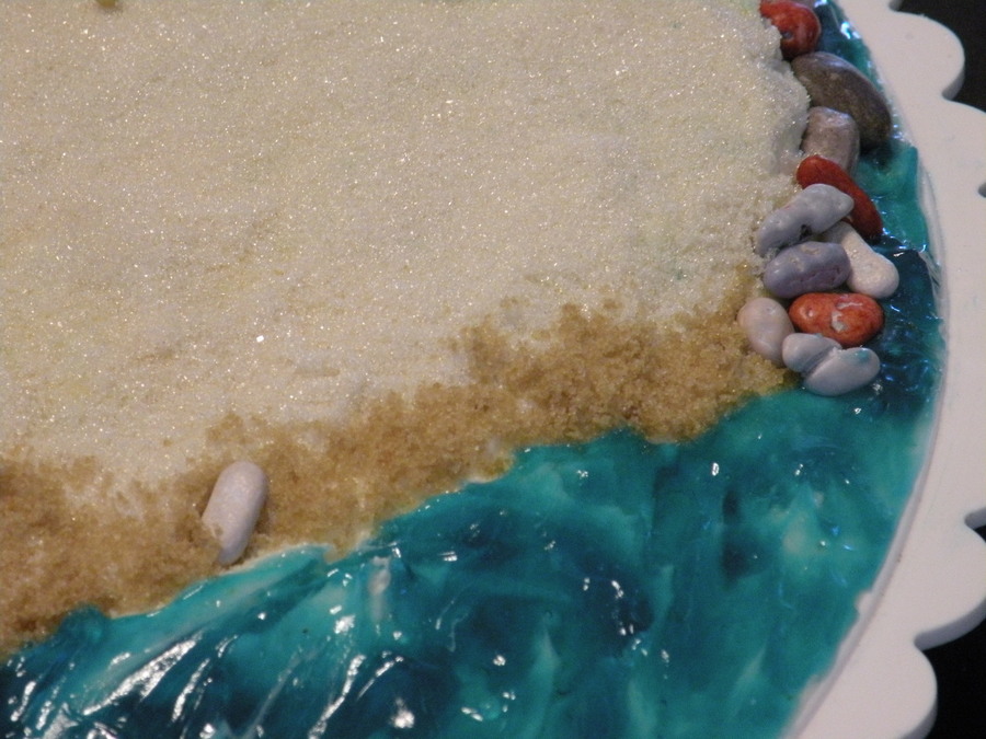 Chocolate and vanilla cake with buttercream. Rocks are chocolate, found them at Walmart and they tasted great and look so real. It was a nice surprise to find the rocks, saved me lots of time! My daughter loves rocks and she learned that some types of rocks form from lava so she wanted a cake that had both. She also loved my previous Hawaii cake and wanted hers to have a beach and water. She is my toughest client! She wanted a mermaid, but I told her I had to stop somewhere! Next time....