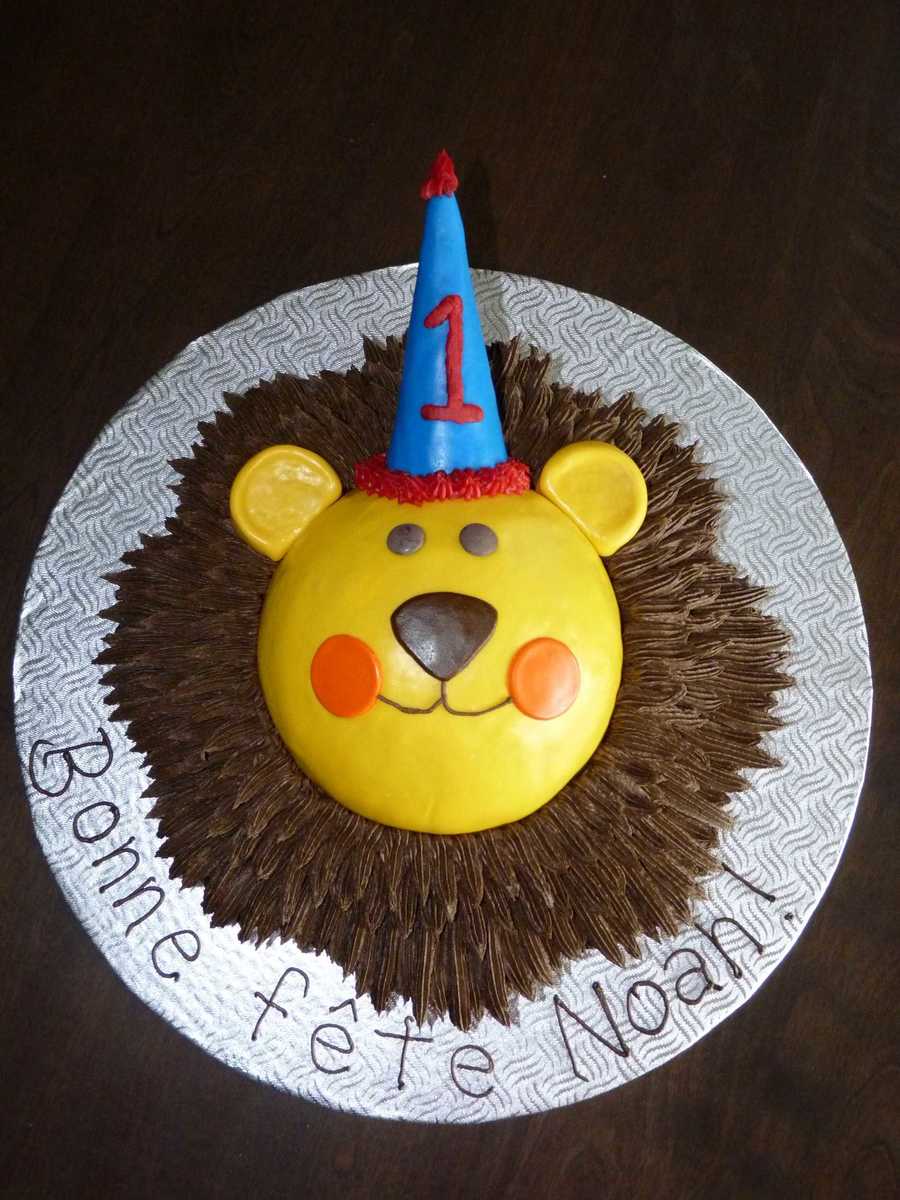 From the Wilton site. Circus cat cake for a baby boy's 1st birthday. Fondant face, chocolate buttercream mane and ice cream cone hat.