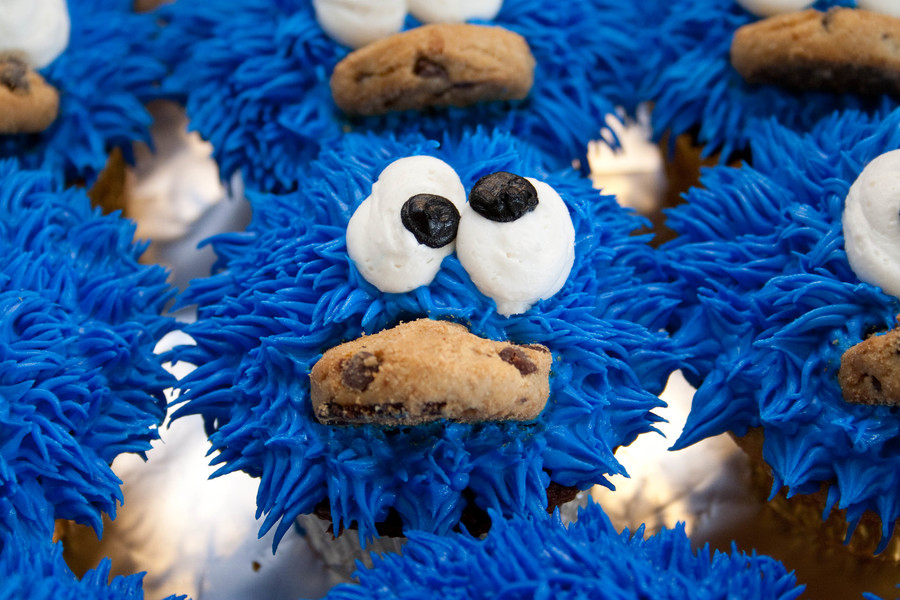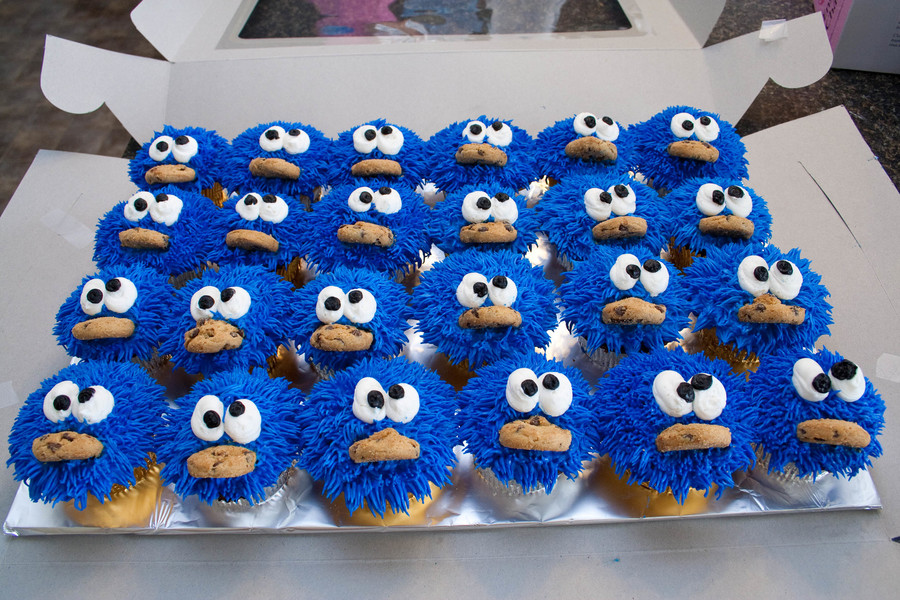 He was decorated with bc and then I stuck a mini chocolate chip cookie in his mouth.