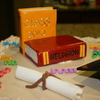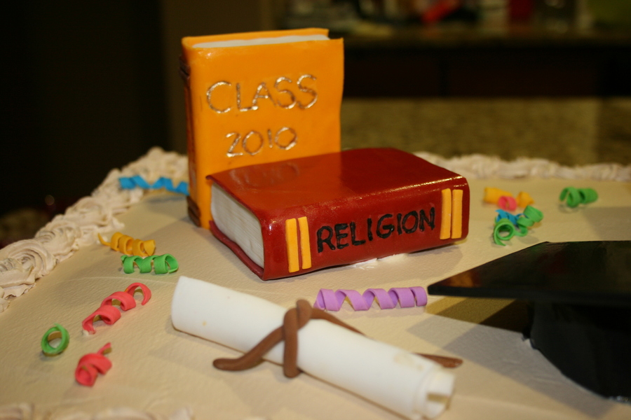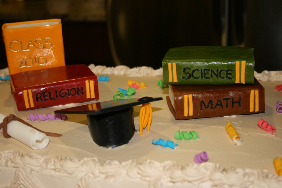mocha cake with espresso whipped topping, books made up of rice krispies treats covered with fondant