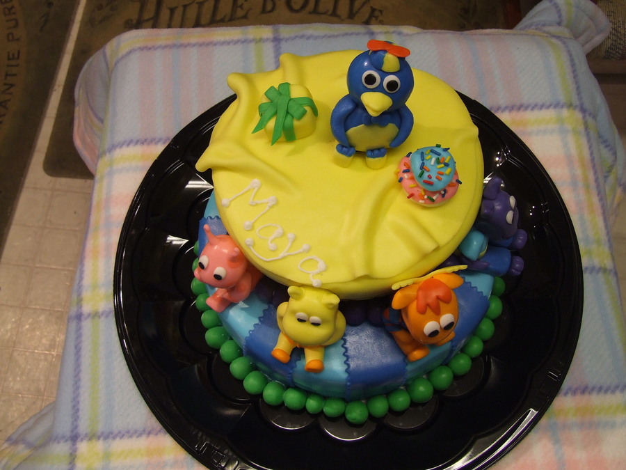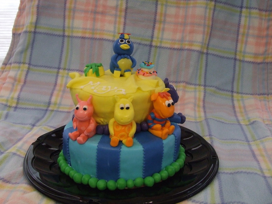 Backyardigans cake for a little girl's birthday party. She brought me a picture of the one she wanted, and here's what I came up with. All the little characters are made of fondant as is the cake covering.