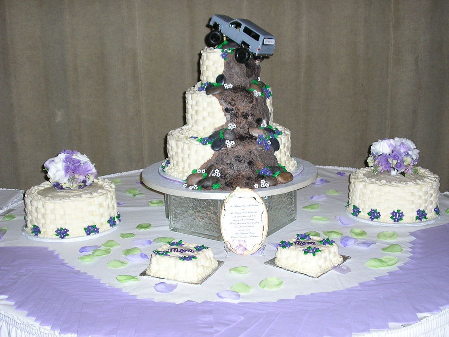 Edited to say I've just added the final cake picture that me and Cindy worked on. It's really her cake but I doweled, stacked, made the blossoms and rocks for it. I'm posting it with her permission as well as the permission of the bride and groom. I think it turned out great!!