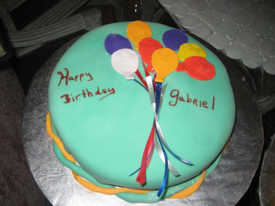 Chocolate cake and frosting. Buttercream and fondant for the balloons