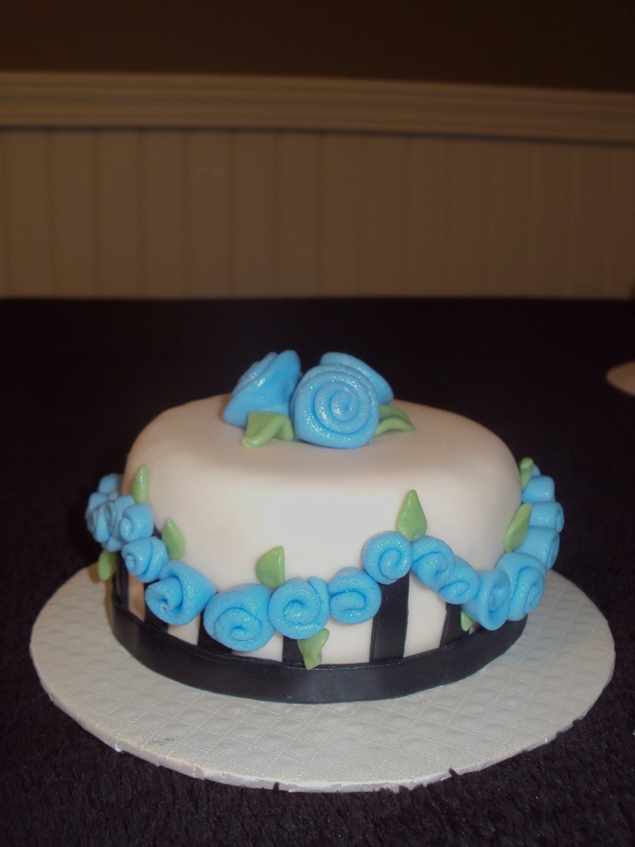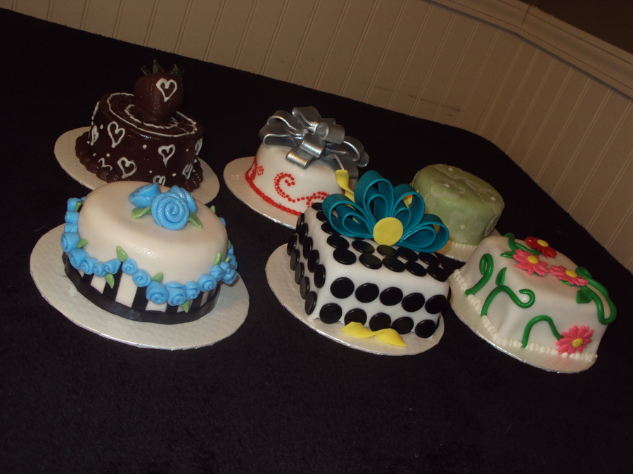 Made for the photographer I work with... she was using them for the meetings she had for her bridal clients. Gave me total creative reign with all - I love that! I had fun with them... square & round minis; 2 marble cakes, 2 spice cakes, and 2 chocolate cakes all decorated differently with fondant.