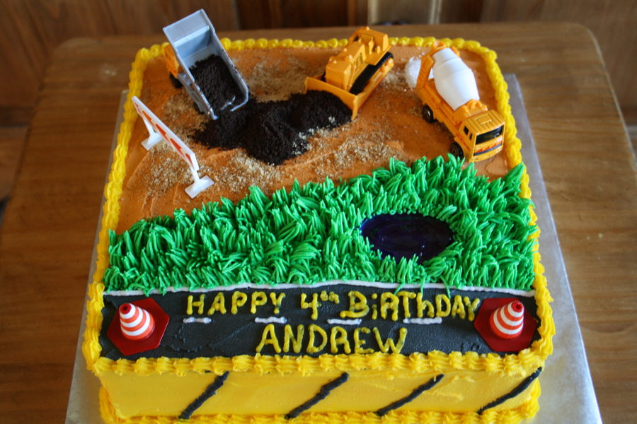 A little guy wanted construction, took ideas from members of cc. Thank you! All buttercream icing, oreo crumbs and graham crumbs for durt, cement id whit buttercream with white sugar sparkles. Toys are real.