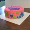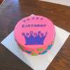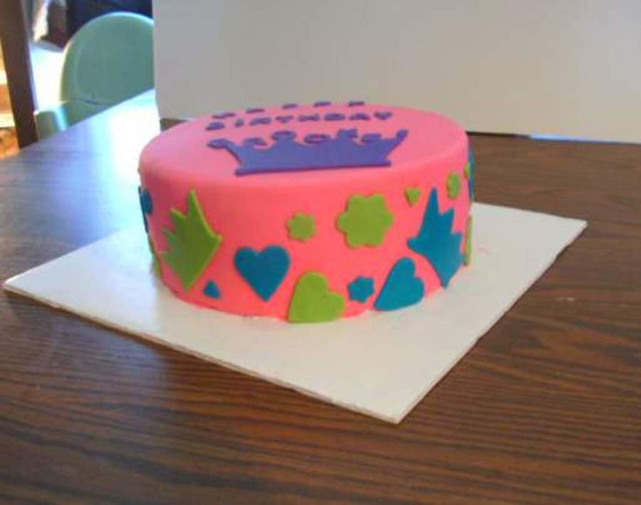 This is a simple 2 layer 10 inch round, buttercream filling, covered in strawberry fondant, and then fondant cutouts.
