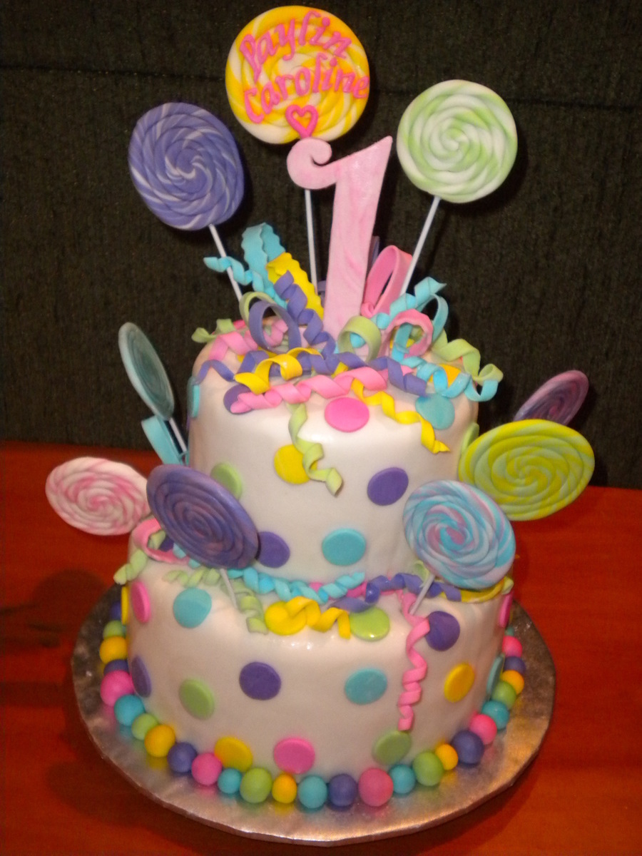 Babys First Birthday covered in MMF, fondant/gumtex decorations.