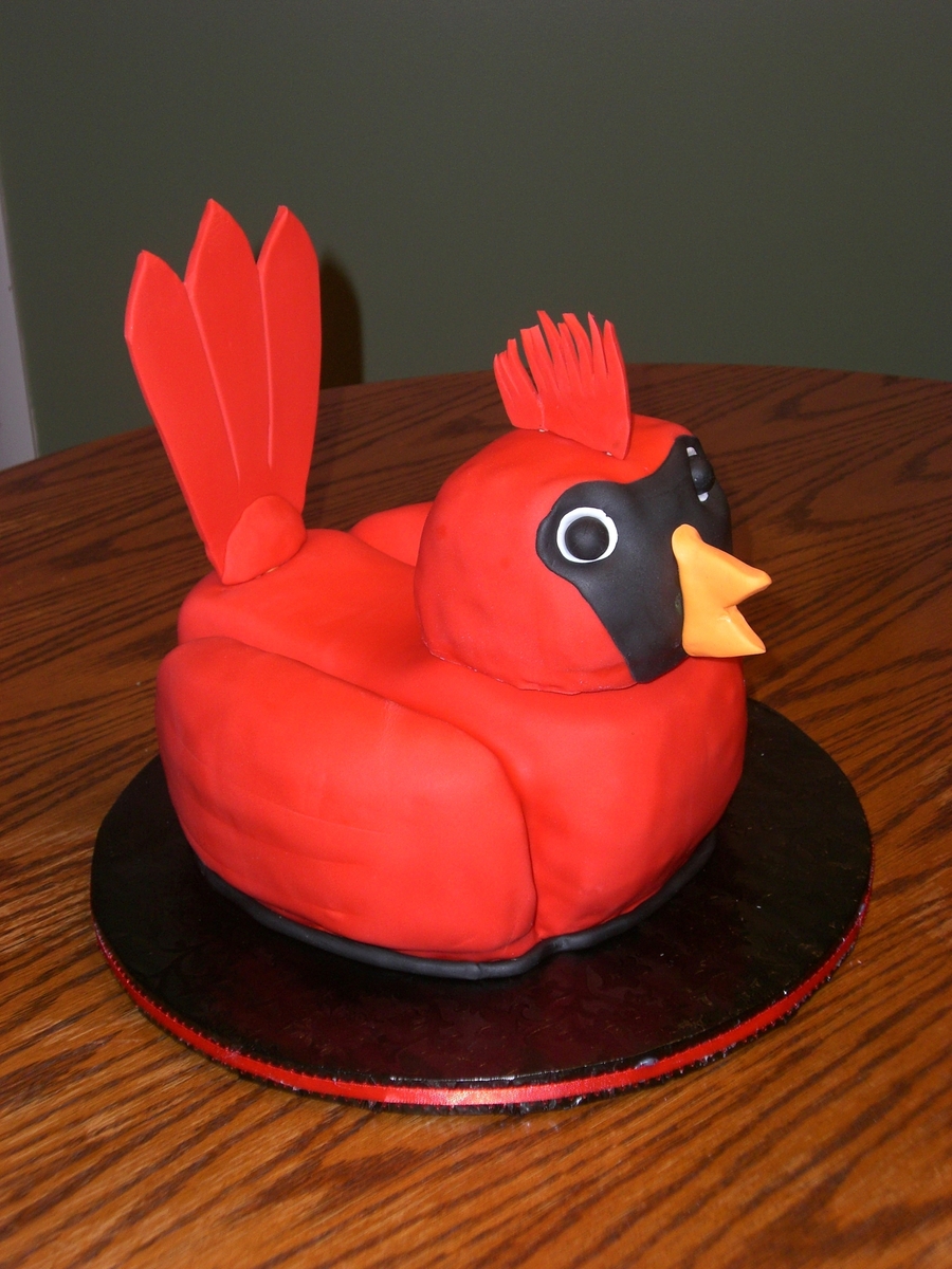A cardinal cake for my mom on mother's day. She loves a red cardinal. I hate to tell her a cardinal is a boy!