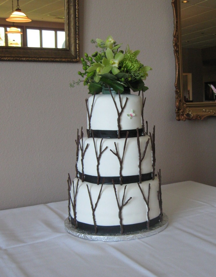 Branch wedding cake, real flowers, branches are wire covered in chocolate melt