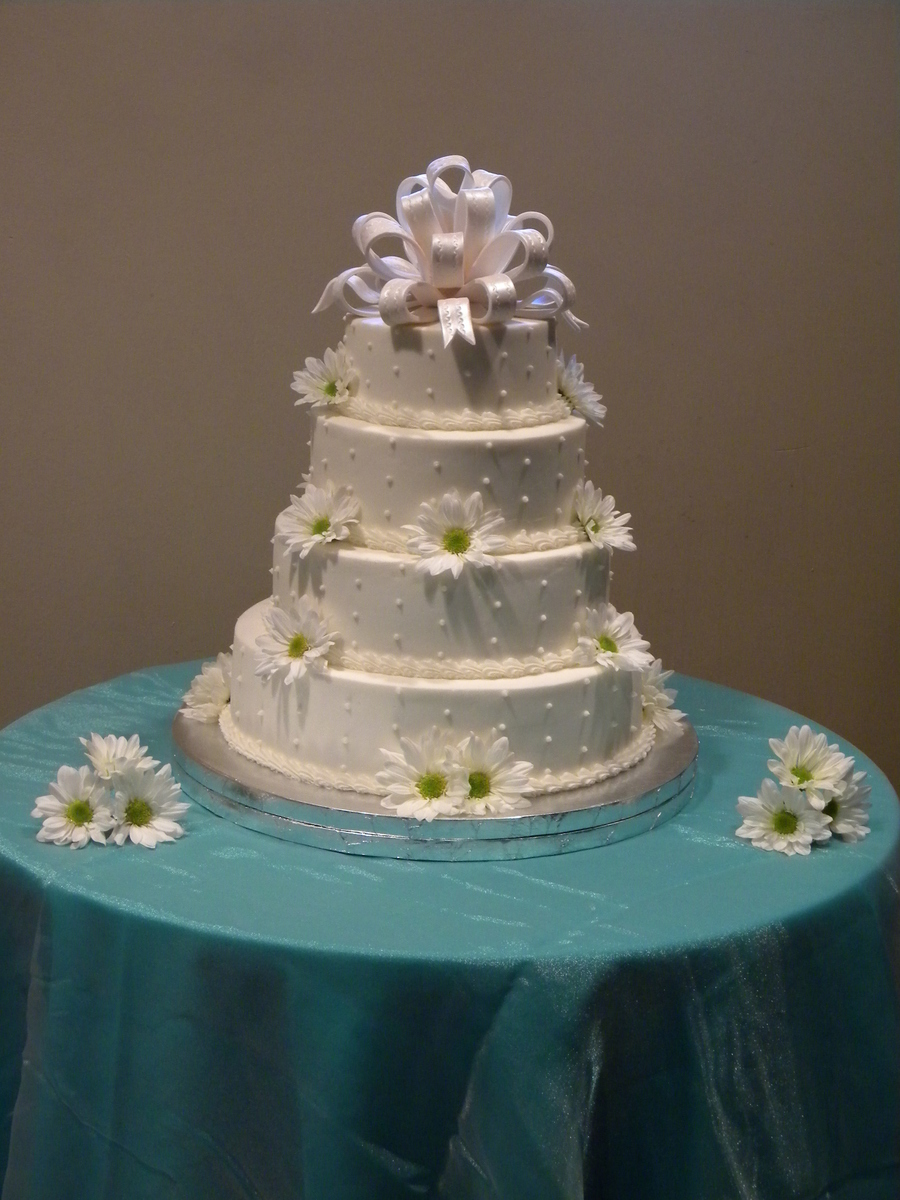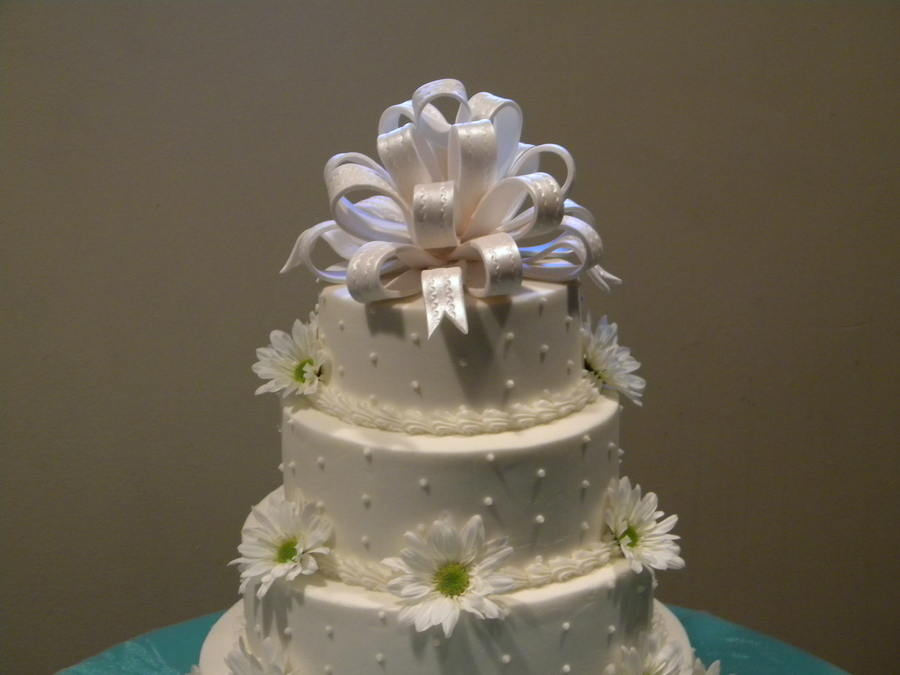 Fondant bow and butter cream frosting.