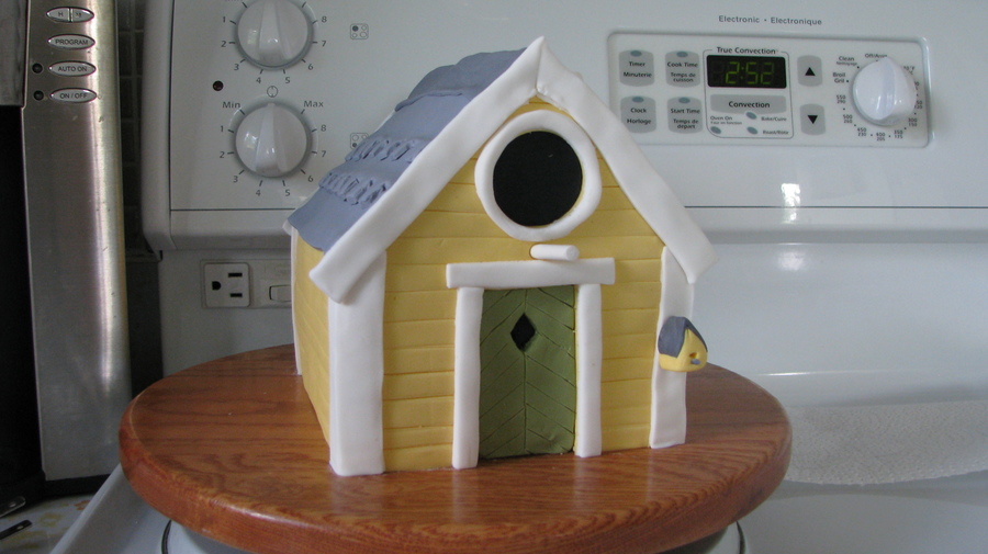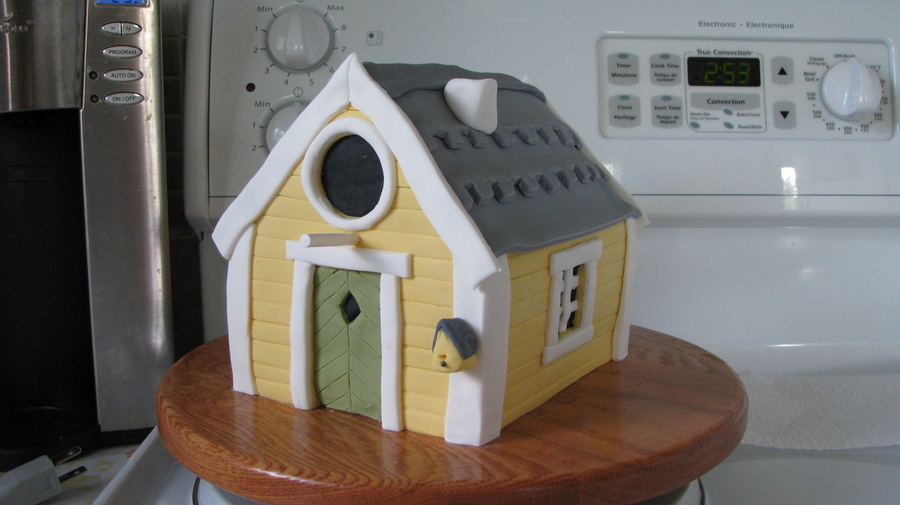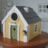 I made this one for my mom for her birthday. I was inspired by the bird houses in Cake Central magazine! All fondant with the exception of the cookie stick as the perch. Apple cake with brown sugar SMBC.