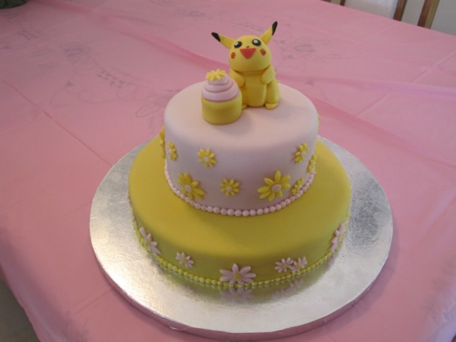 By special request for my niece. Pikchu is made from gumpaste, cupcake from fondant. I used MFF for the first time and I love it! It can roll very thin and still cover well. She really loved this cake so I count it a success.
