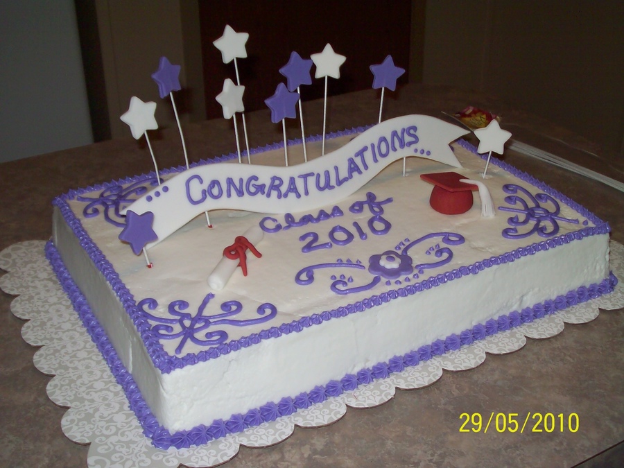 Made for a woman I work for her daughter graduated this year. Iced in buttercream and all fondant accents.