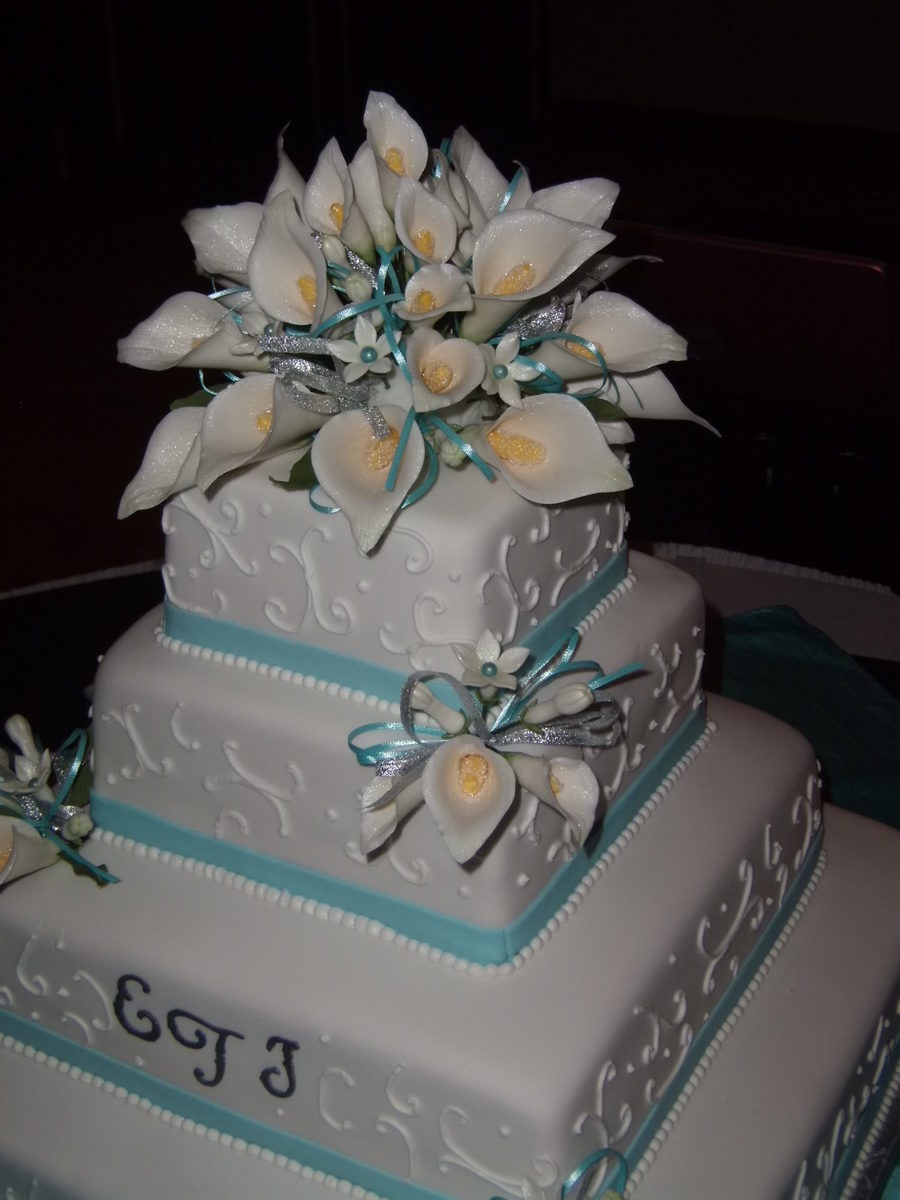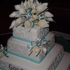 My 2nd wedding cake, but the largest (real) cake I've done. Made me a little nervous, but thanks to some encouragement and support from some kind people on CC, everything went smoothly. Bottom is 16", then 12", 8", and 6". GP flowers; fondant ribbon. TFL!