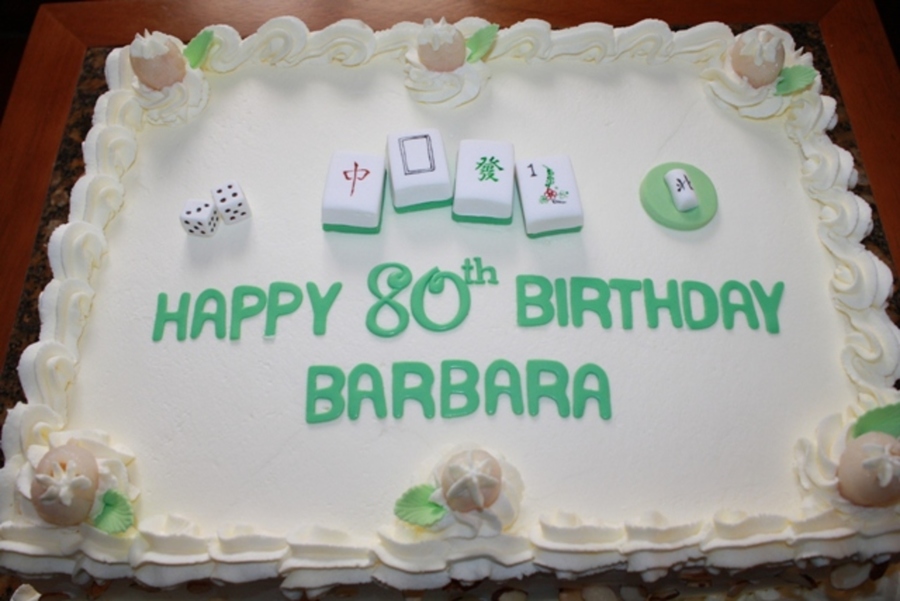 Mahjong tiles, dice and banker key made from fondant. Hand painted to look like my set for a serious mahjong player.