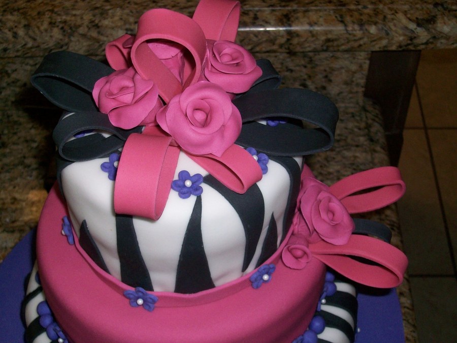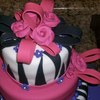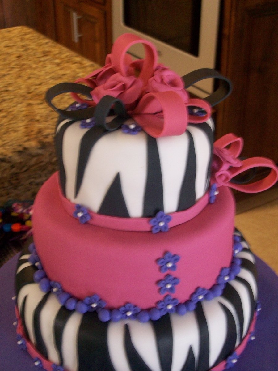 Zebra print cake. strawberry cake with strawberry cream filling. Red Velvet with Raspberry cream fillin.