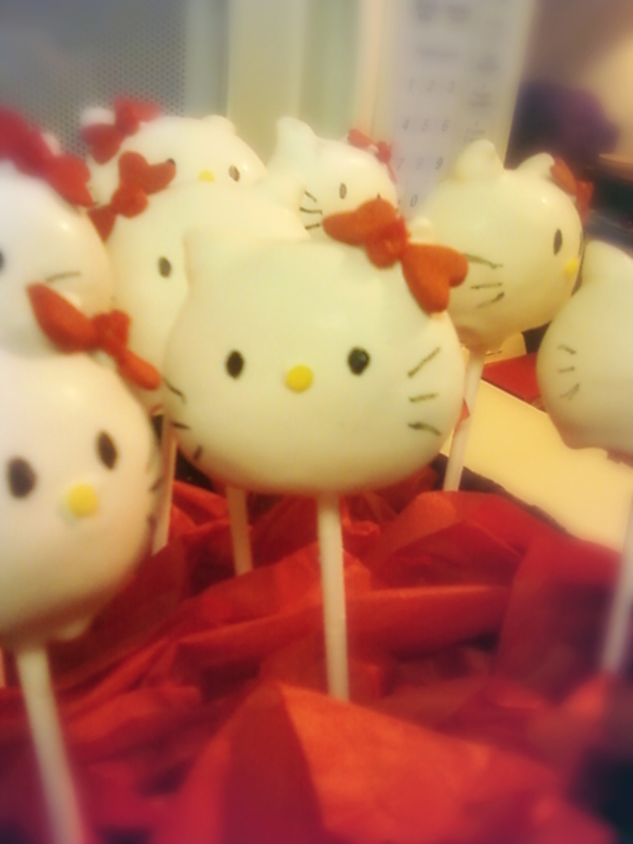 These were Super fun to make but more fun to eat. Credit to Bakerella for the idea. These were for a friends birthday. They are WASC funfetti cake mixed with homemade butter cream to form the balls. White chocolate chips for ears, then dipped in white chocolate melts. The bow and nose are sprinkles adhered with melting chocolate and the black is edible writer pen. Also sorry about photo quality i left my camera at work and only had the cellphone on my at the time. TFL!