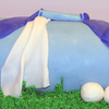 I saw the cutest golf bag here by Surina and thought it would be a perfect cake for one of the guys I work with. i bake birthday cakes for all of them, and since he is a golfer, and was the one behind what the guys got me for my birthday (a complete set of golf clubs that were at the base thrift shop. nancy lopez clubs, love those guys) i wanted to do something a bit different. it is eight 6x2 layers, alternating chocolate pound cake and butter pound cake, covered in a chocolate buttercream and michelle foster's fondant recipe. i still need to work on the fondant technique, and making it. but i am fairly happy with it. even the couple of places where the elephant skin started just added to the feel of it being a used bag. thanks for looking, and any ideas, helpful suggestions are very welcome! oh the gold balls are fondant. just got too lazy to make clubs.