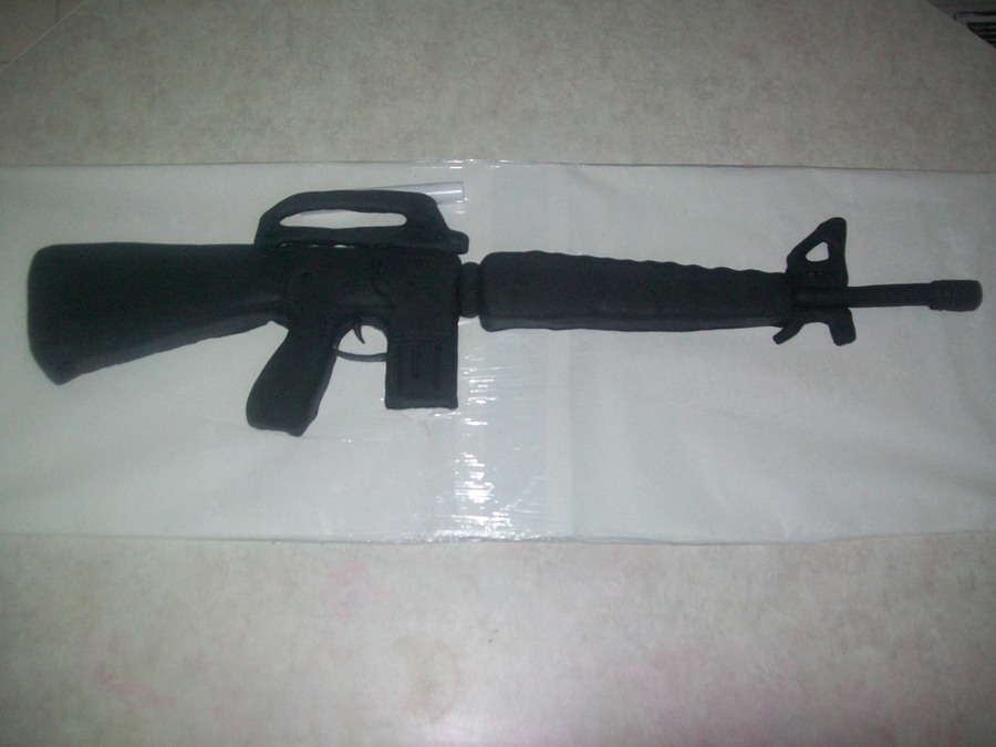 I was asked to replicate this gun, and I was not sure how I was going to do it... but here it is.. it is a repication of a 1973 COLT AR-15 ... the gun itself is cake, but the barrel, trigger and the "thing" on top are not edible