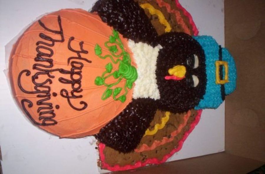 Thanksgiving Cake. I promise the chocolate head and wings are borwn and NOT black! haha The picture makes it looks darker.