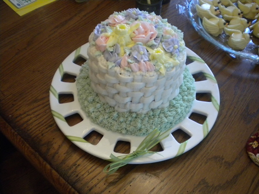 Buttercream flowers on vanilla cake. Filled with strawberry buttercream.