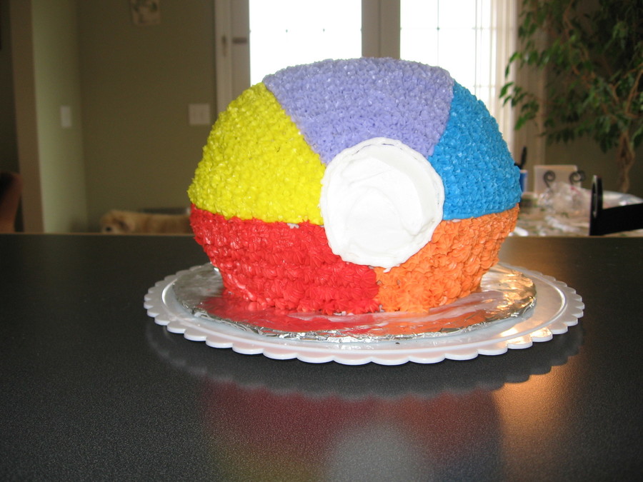 Similar to my other beach ball but perfected some techniques the second time around. 3D ball pan, used the large half ball pan and put two together secured with dowel rods. Buttercream icing, coarse natural sugar is the sand.